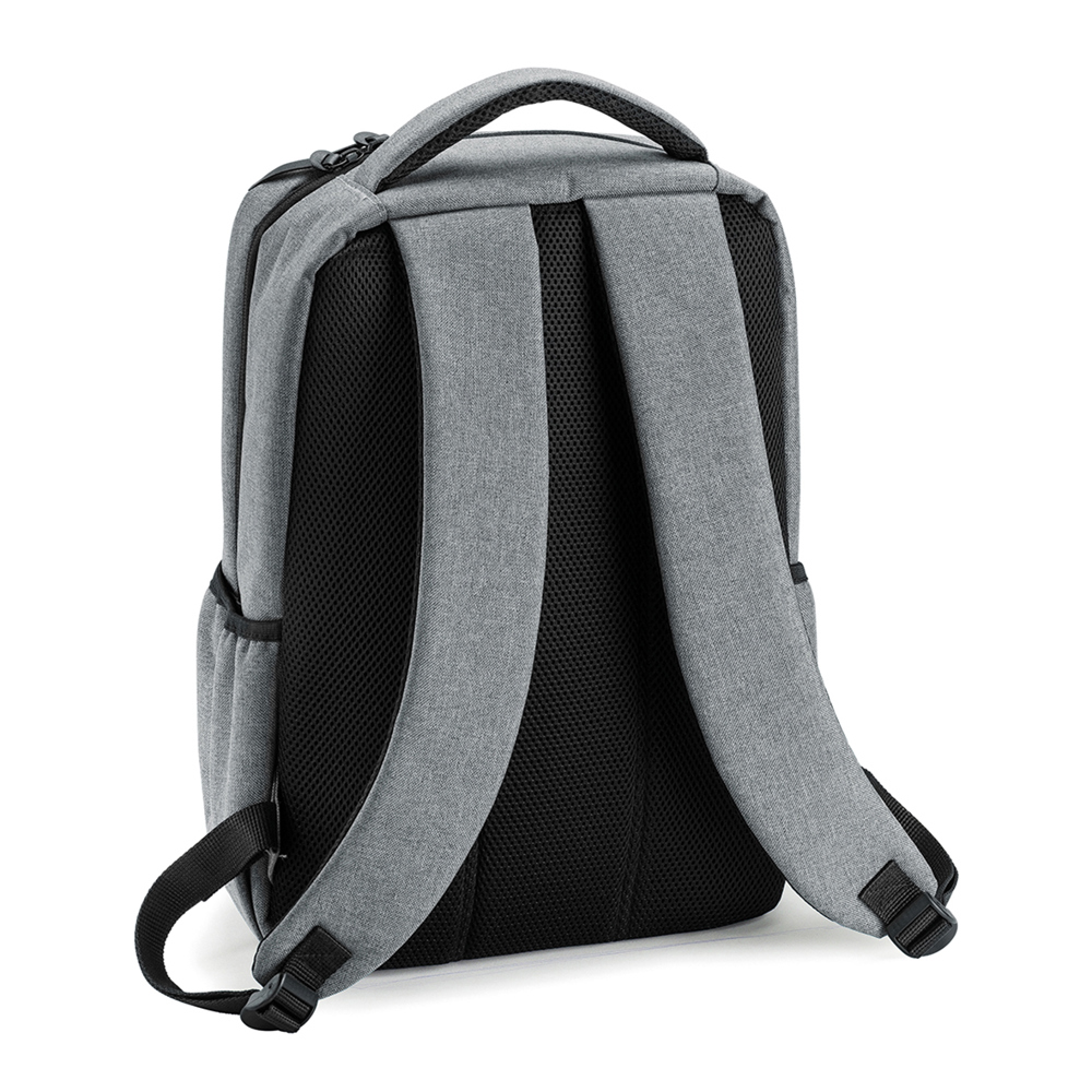 This backpack is made from durable 600D two-tone polyester and 210D lining, offering a capacity of approximately 23 liters. It features a 2-way zipper main compartment with a laptop sleeve and a slip pocket that fits up to 14" devices. Additional zipper front pockets and side slip pockets provide extra storage. The padded back ensures comfort, while the adjustable, padded shoulder straps and padded carry handle offer easy and convenient handling. Ideal for daily use or travel.