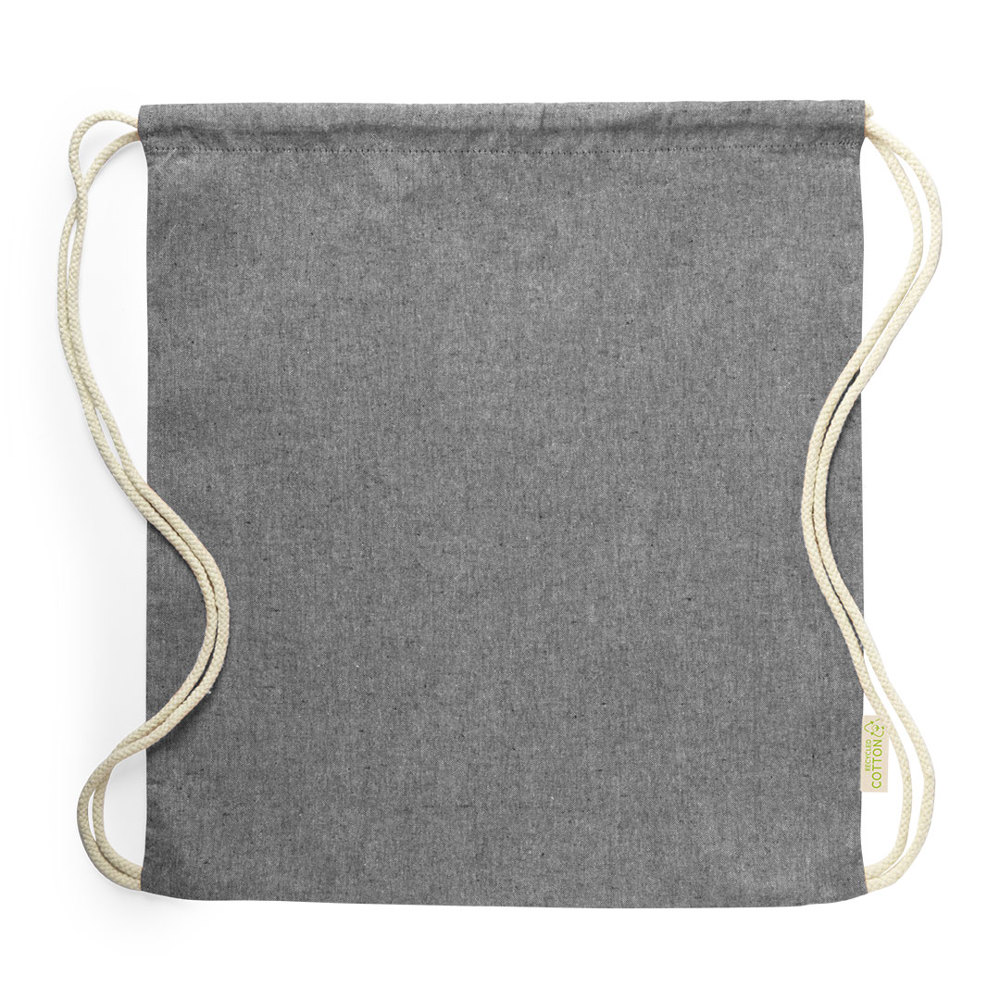 Nature line drawstring backpack in recycled cotton material, 120 g/m2. Self-closing strings in cotton, with eco label on one side and available in a wide range of nature colours. Resistance up to 9kg weight.