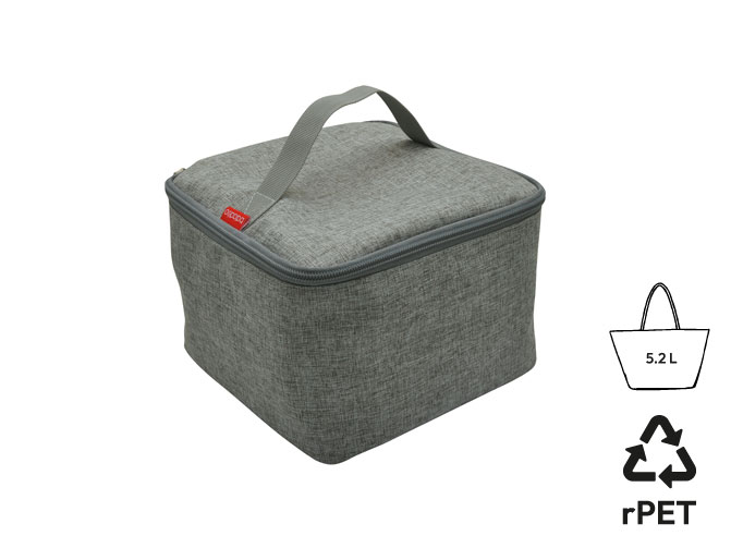 Insulated cooler bag in heather grey wulong RPET fabric. Suitable for all our bento models. 3mm thick insulation. Reinforced handle. Zipped closure. Capacity: 5,2 L.