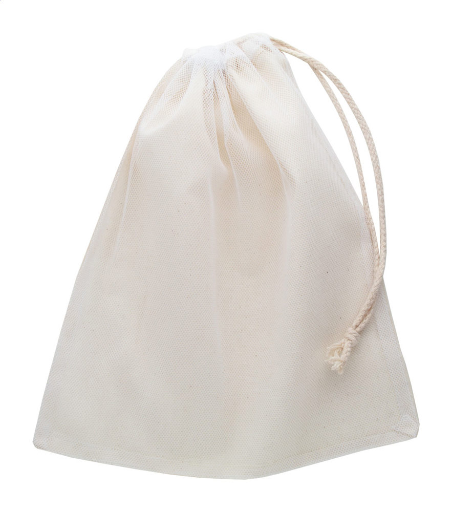 Reusable cotton produce bag with polyester mesh front and drawstring closure, 95 g/m². more