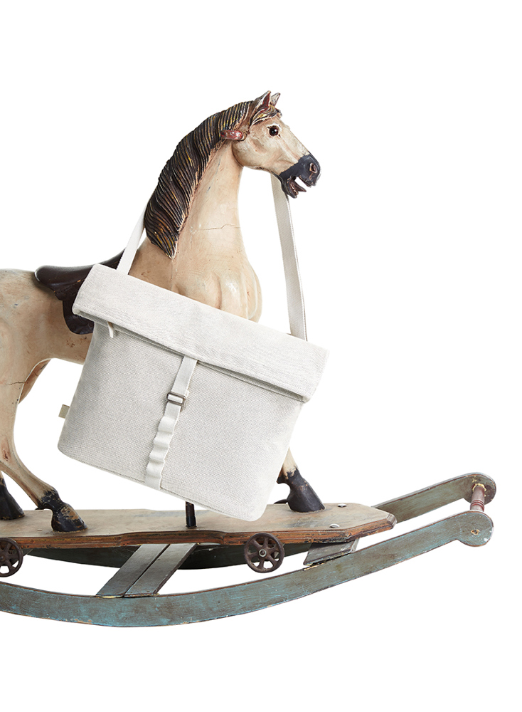 large zipped main compartment with padded back and metal fastening; padded base; flat pouch; zipped pocket on back; adjustable shoulder strap; high quality metal accessories