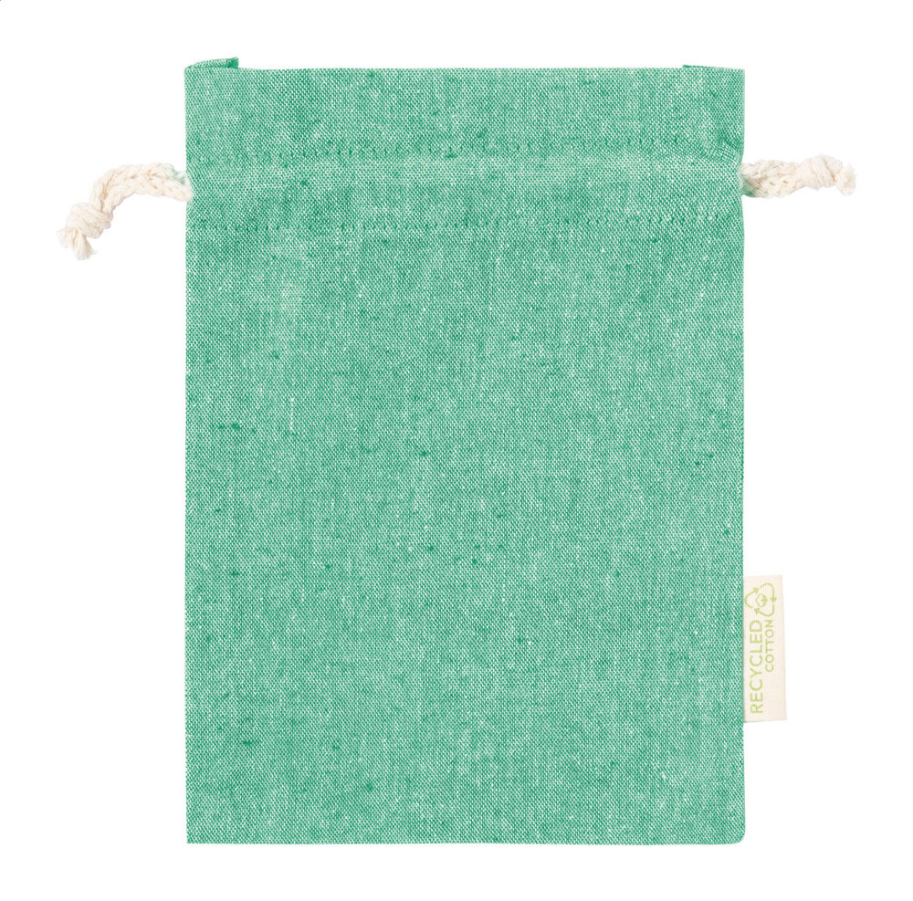 Reusable recycled cotton produce bag with drawstring closure. 100% recycled cotton, 120 g/m².