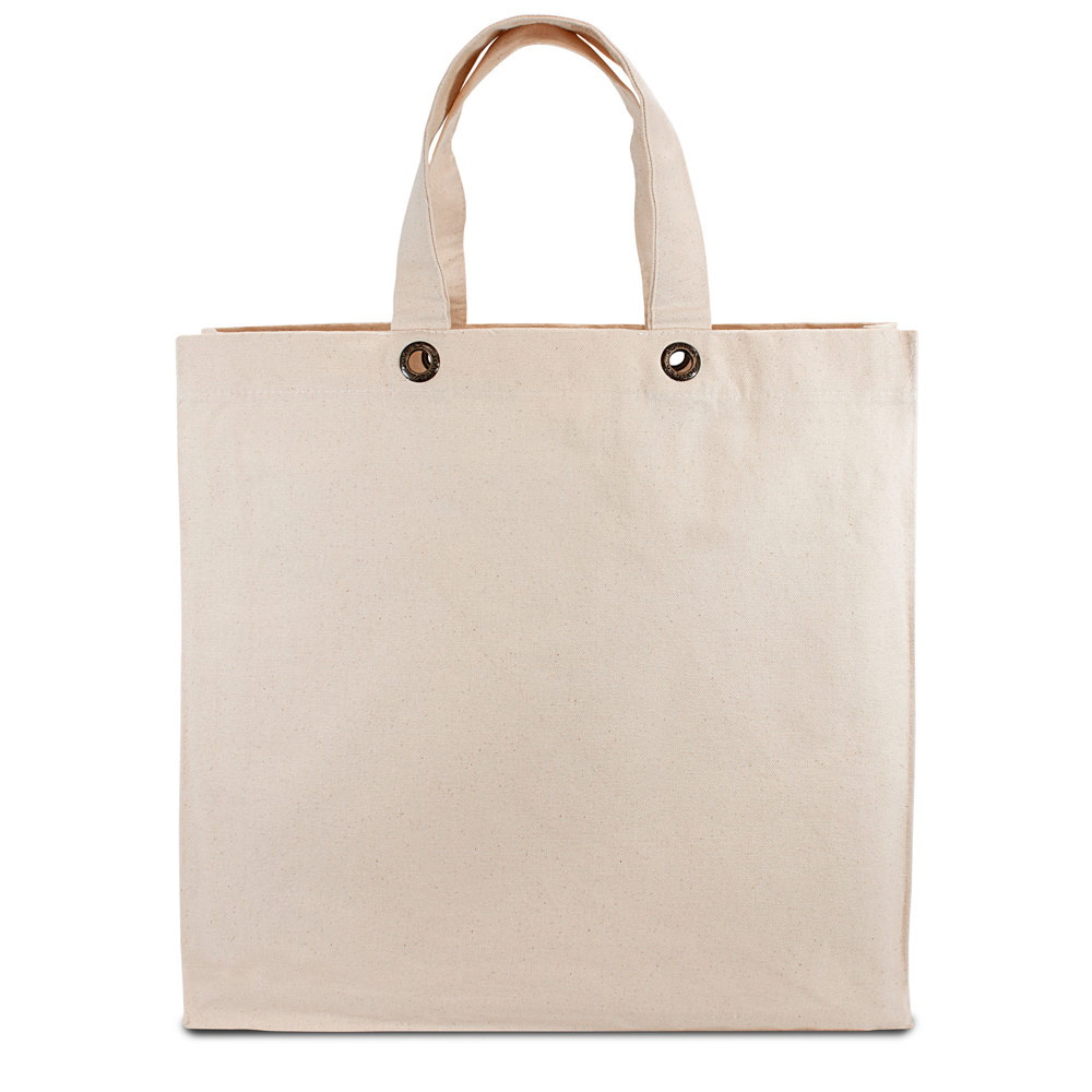 The Macau shopping bag by Joytex® has folds on sides and underside. The bag is made from 100 % OEKO-TEX® certified cotton in a hard-wearing superior quality. The sturdy cotton Macau model with its short straps is perfectly suited for large shopping items. It is also a good advertising medium for quality shops and can be used to carry heavy Products. It is also suited as a local merchandising Product for souvenir shops. The straps are attached to the bag with fashionable metal staples.