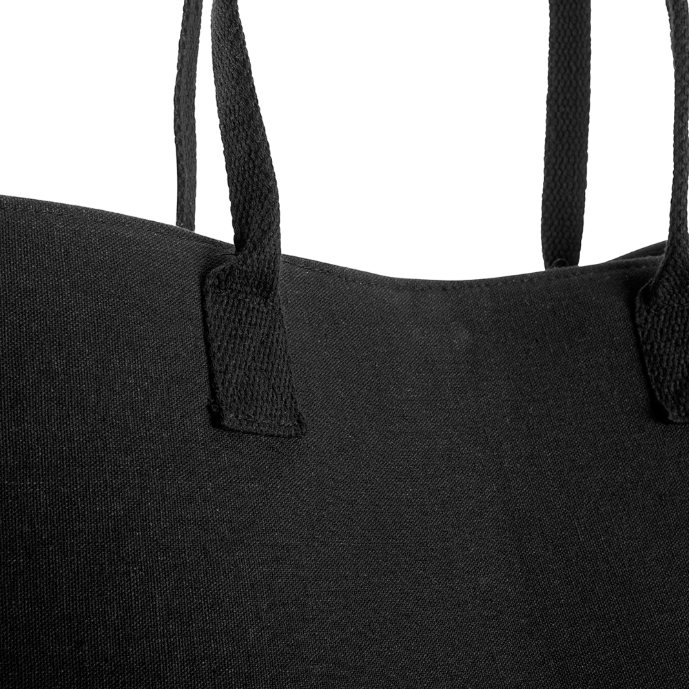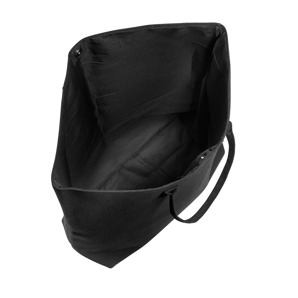 The shopper is made of 80% recycled cotton and 20% rPET. It features a main compartment with a magnetic button closure, as well as an open inner pocket. The carrying handles are approximately 78 cm long and 1.8 cm wide. With a volume of about 60 l, the shopper offers plenty of storage space and is both eco-friendly and practical – perfect for everyday use.