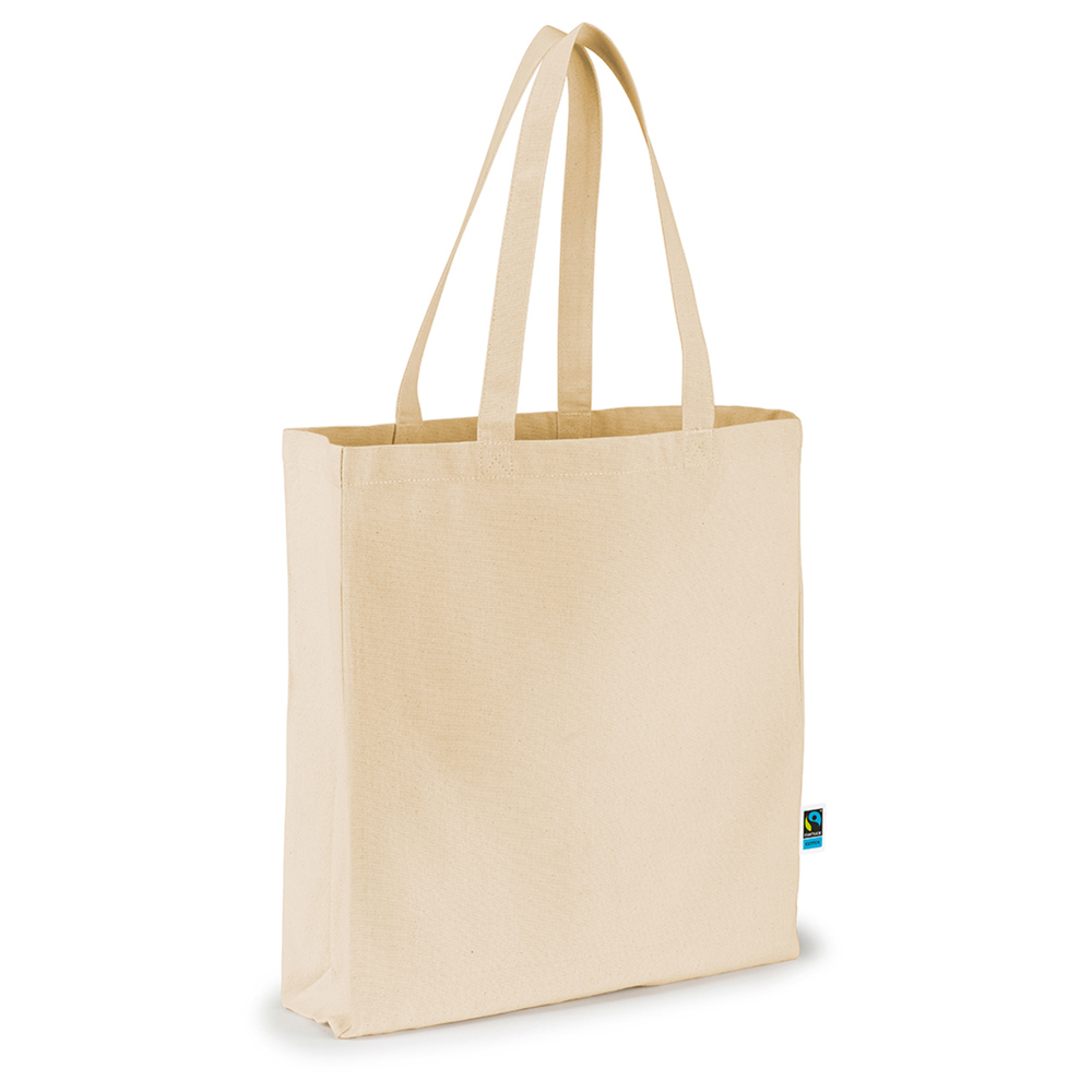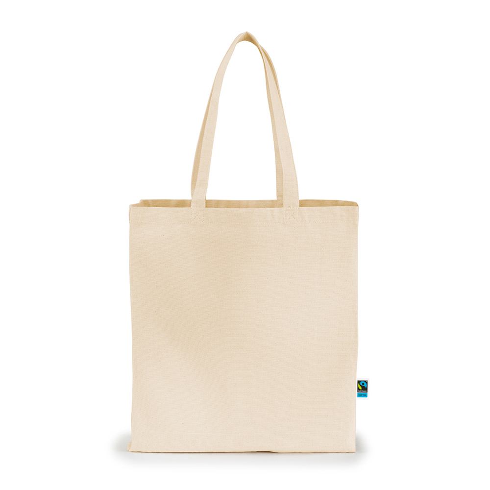 The LEAH shopping bag is made from high-quality Fairtrade cotton (12oz, 340g/m²) and offers a capacity of approximately 16 liters, providing ample space for your shopping. It features an open main compartment and sturdy Fairtrade cotton handles (approx. 62 x 2.5 cm) for comfort and durability. Ideal for everyday use.