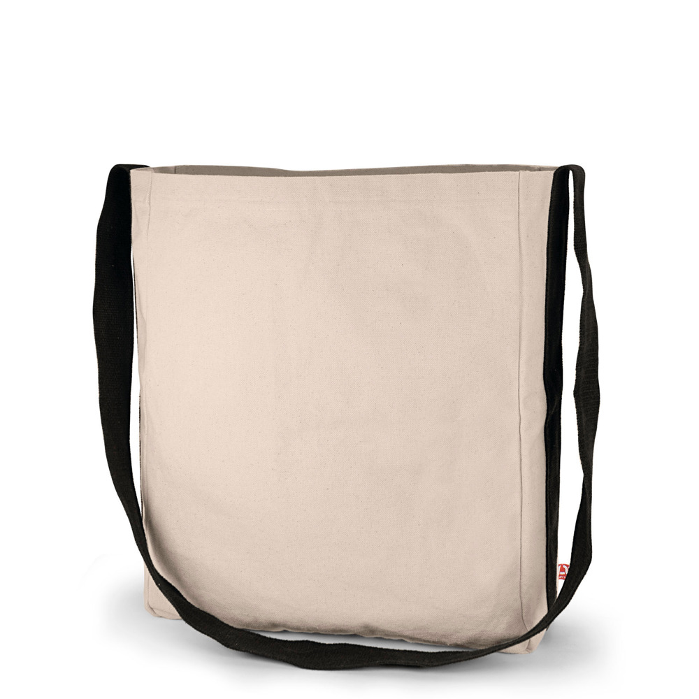 Hamburg is a shoulder bag with bottom and side fold. It is made of 100 % OEKO-TEX® certified cotton in durable top quality. It is a very strong canvas with 330 g/m². Hamburg has a black woven shoulder strap and a bottle holder inside. He is therefore an ideal companion for trade fairs and events. The high-quality workmanship of this bag, with a black woven shoulder strap not only looks good, it also makes Hamburg a real longlife product.