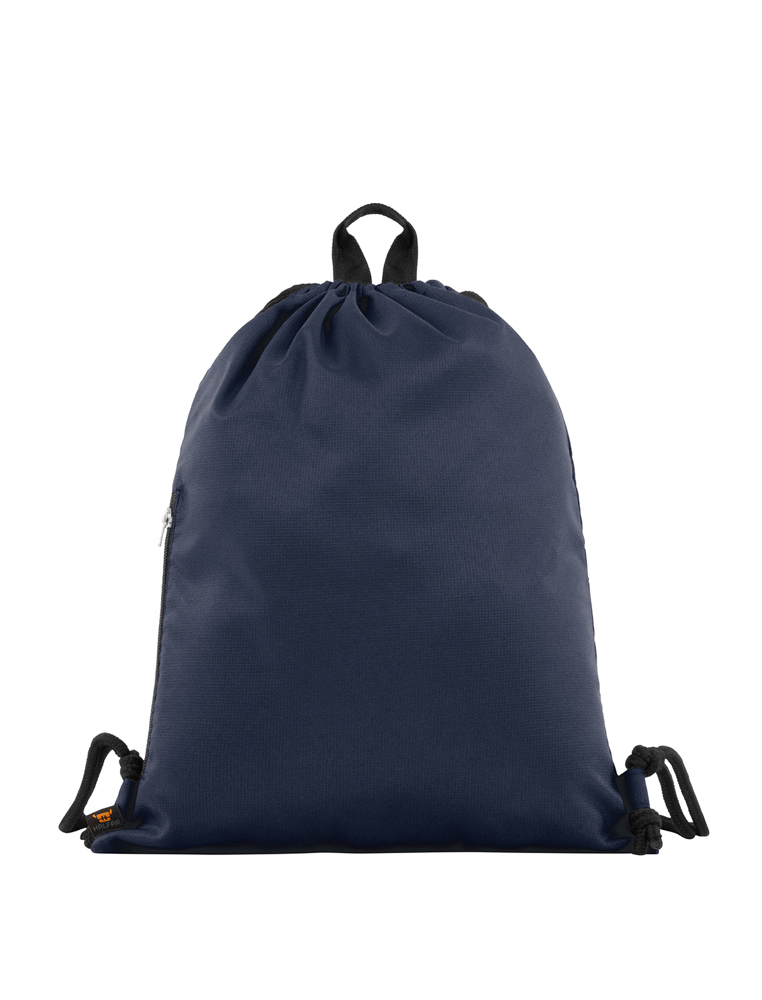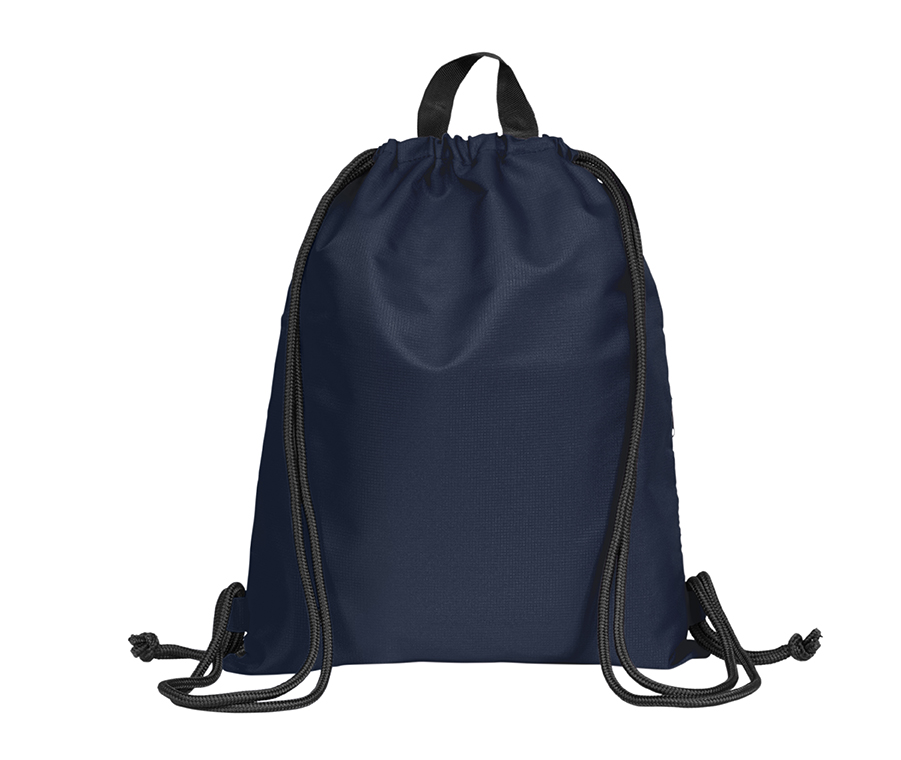 large drawstring backpack; main compartment with lateral zipper pocket; drawstring; carrying loop