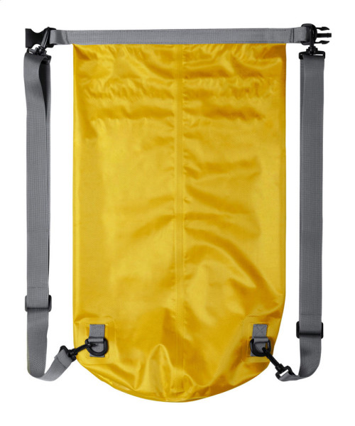 Waterproof, ripstop dry bag backpack with adjustable shoulder straps and plastic buckle.