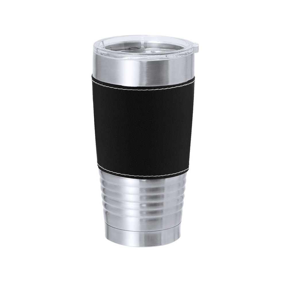 Insulated Mug made of double-walled stainless steel and sophisticated PU. With a capacity of 420 ml. It includes an elegant PU sleeve, manufactured with a distinguished white stitching. It is ideal for your desk, table, or any surface where you can enjoy your favorite drink. Including a transparent lid with dispenser, easy-open, and BPA-free.