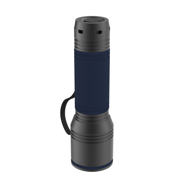 This powerful and rechargeable aluminium torch is an in-house design developed exclusively for the REEVES brand from REFLECTS. The torch is available in silver or black anodised finish, has a black carrying strap and can be combined with a silicone grip sleeve and/or a silicone ring. The silicone components are available in many different colours from Cologne. Of course it is also available without any silicone components.