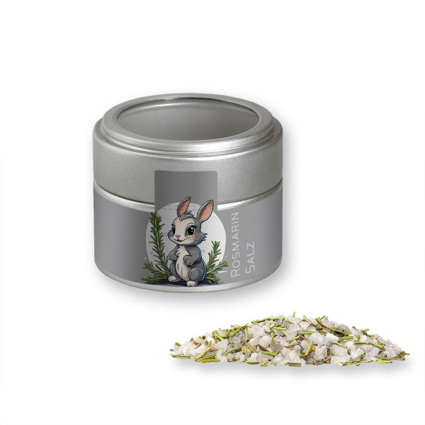 Rosemary salt, ca. 75g, metal tin mini silver with window