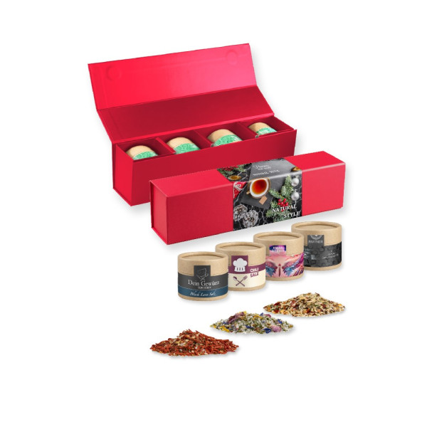 Rough spice mixture (category 1), ca. 120-300g, gift set premium red with 4 cardboard can mini