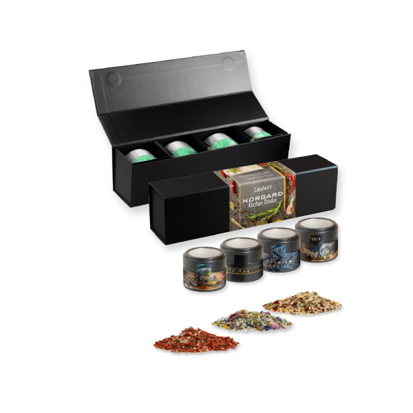 Rough spice mixture (category 3), ca. 140-440g, gift set premium black with 4 metal tin mini with window