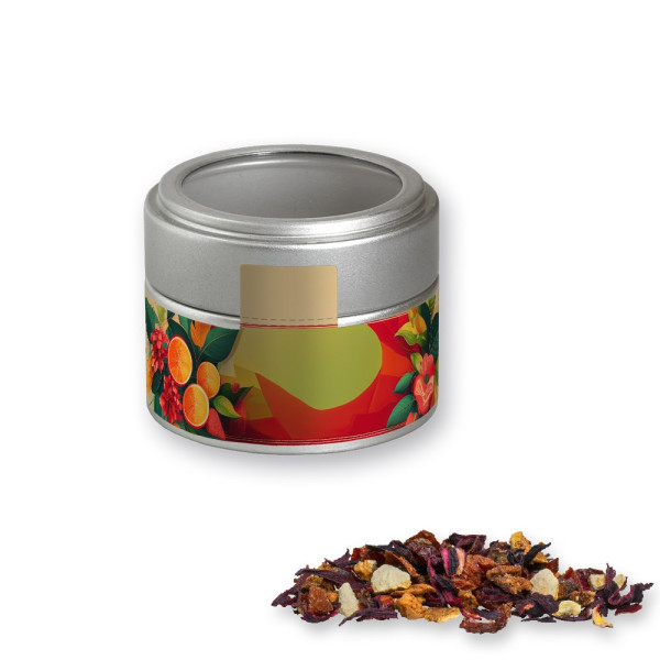Fruit tea good mood, ca. 30g, metal tin mini silver with window