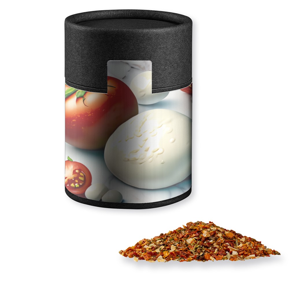 Tomato mozzarella spice, ca. 50g, cardboard can midi black