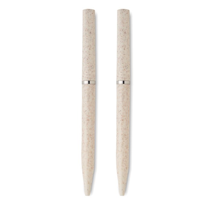 Wheat straw/ABS pen set with 1 twist ball pen blue ink and 1 twist graphite inkless ball pen. Presented in recycled paper box. FSC®-certified | FSC MIX, P5.1, FSC-C213206