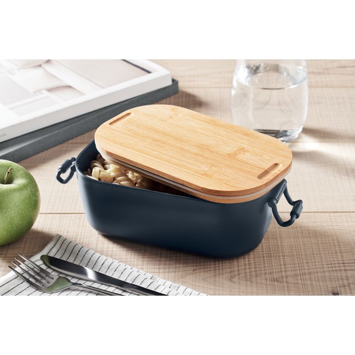 PP lunch box with 2 side clasp closures and bamboo lid. Capacity 700 ml.