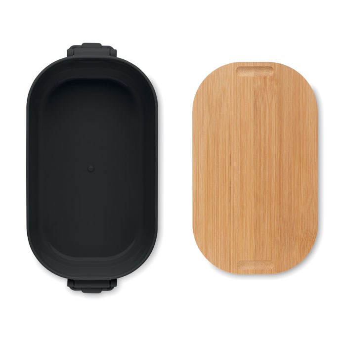 PP lunch box with 2 side clasp closures and bamboo lid. Capacity 700 ml.