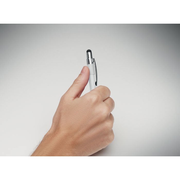 Stylus push ball spinner pen in recycled aluminium. Blue ink. more