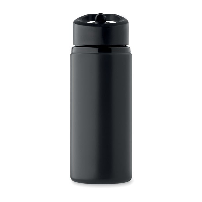 Recycled stainless steel (90% recycled stainless steel and 10% stainless steel) single wall bottle with foldable mouth piece, straw and lid with carrying handle. Capacity: 500 ml. As this is a single walled bottle, heat transfer can still occur.