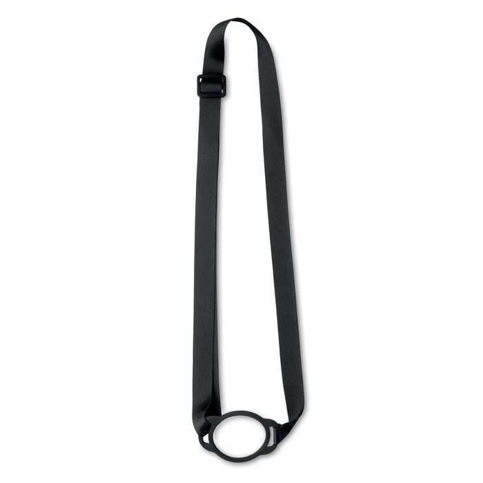 Lanyard with silicone festival event cup holder (6 cm diameter) and PP adjustable buckle. Lanyard 20 mm wide.