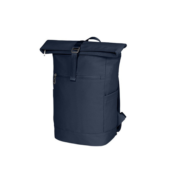 fashionable roll-top backpack; zippered main compartment with adjustable fastening system; loop strap on the lid; high-quality metal accessories; padded device compartment; zippered front pocket; two side pockets; padded base; padded carrying system; fastening loop on the back for trolley handle; handle