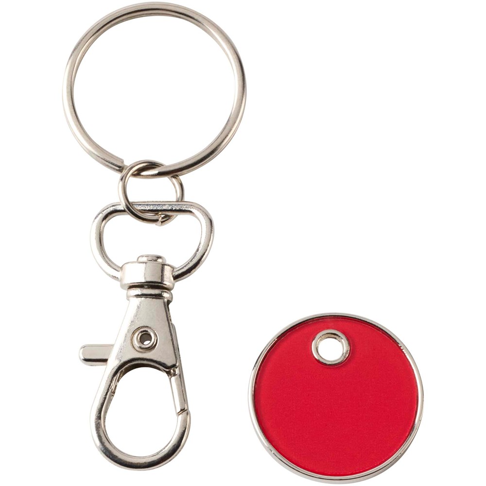 The Rory keyring with coloured trolley coin is designed to fit most supermarket trolleys, allowing you to unlock them without coins or tokens.