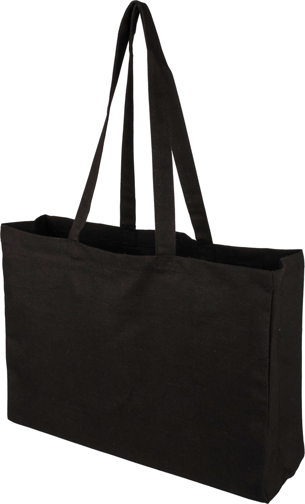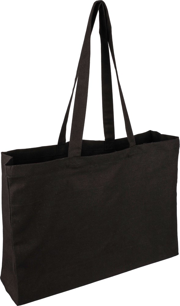 Dyed cotton (280 gsm) shopping bag with 10 cm gusset. Maximum carrying weight: approx. 8 kg. This product is OEKO-TEX® STANDARD 100 certified.