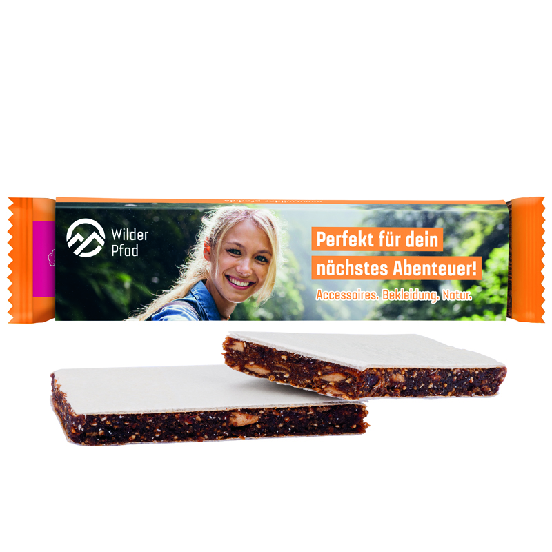 Promotional slipcase made of white cardboard, individually printed. Content: 1 VIBA Multi-Fruit Delight Bar. Other flavours from a minimum quantity of 1,150 pieces on request’, 35 g