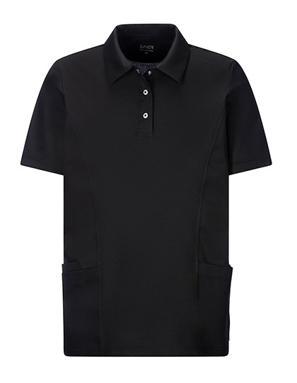 Unisex | Made from polo piqué (front and back) and blended fabric (sleeves, collar and side panels) | Polo collar with press-stud panel (three studs) | Two patch pockets, one additional slip pocket | Side vents (L= 10 cm) | Back length for size M: 75 cm