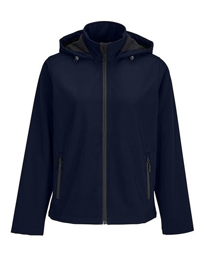 Outer fabric: recycled polyester, polar fleece lining: recycled polyester - 2 layers; 280 g/m² | Front fastening and side pockets with black nylon zip | Black zip pullers | Hood with drawstring | Slightly longer back CatalogNr: L04448 Composition: 100% Polyester Product: Jackets Sleeve: Long sleeve|With cuffs Colorfulness: 1-coloured Production Certificates: Vegan|OEKO-TEX® STANDARD 100|Recycled Polyester|Fair Working Conditions Label: Removable label Material: Softshell|Fleece inside Cut: long back Menu: Ladies|Partner Composition: Polyester (100%) Jackets (kind): Softshell jackets