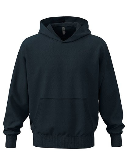 Made from a heavy blend of combed cotton and polyester | Oversized | Unisex | With a double-layer hood | With a printable half moon | Wide ribbed cuffs at sleeves, collar and waistband
