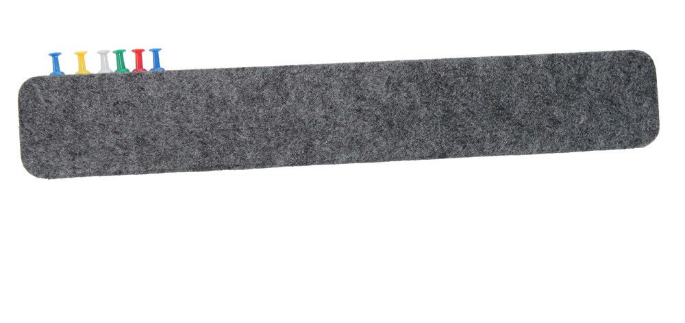 The self-adhesive felt mini bulletin board is a space-saving solution for notes and reminders. It fits perfectly on walls or doors and is therefore ideal for the office or home. The set includes 6 pins. Practically packed in a polybag. Dimensions 33 x 5 x 1.2cm. PU 72/0 pieces.