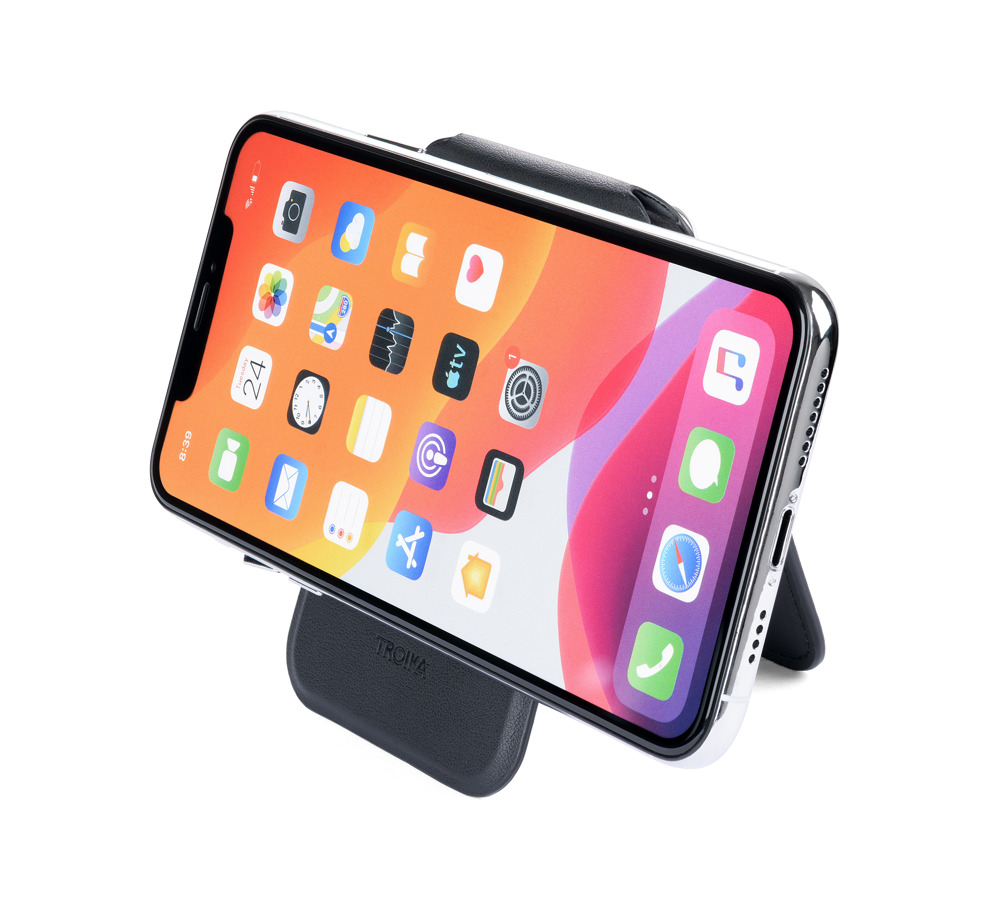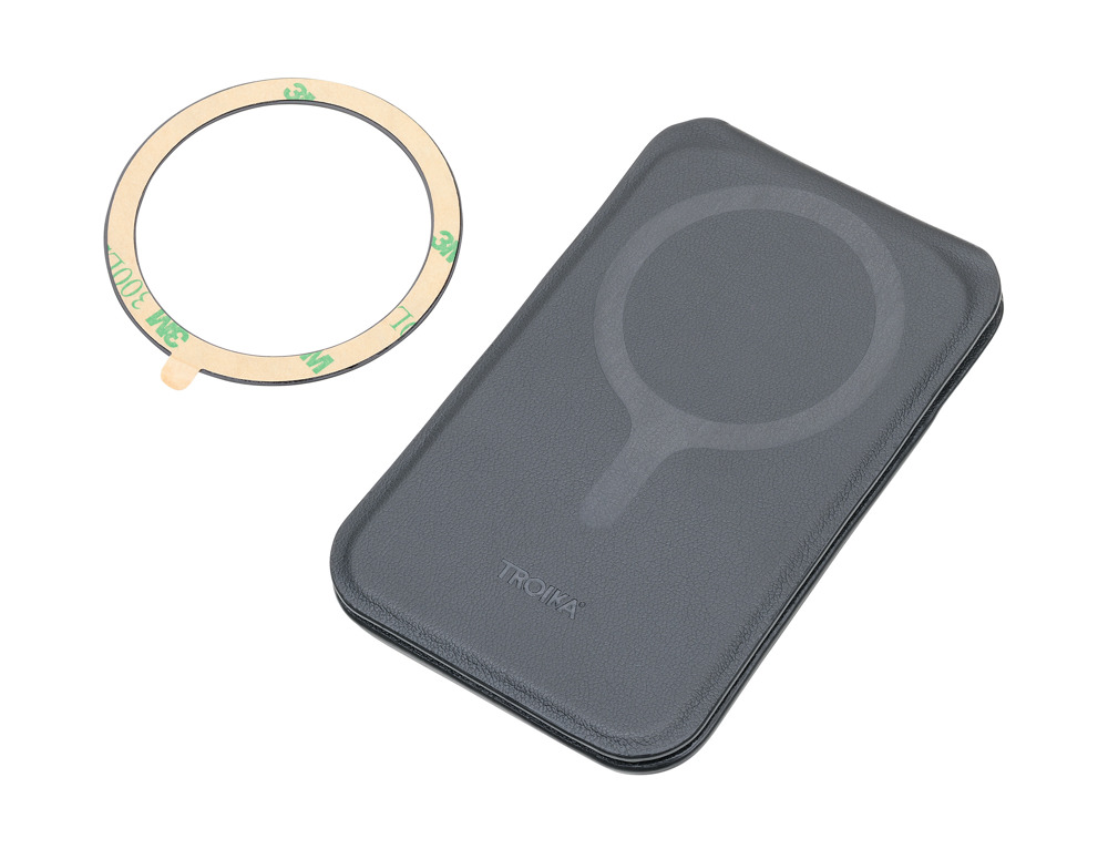 Card case MagSafe, stretch pocket for 2-5 cards, key compartment, compartment for 1 credit card inside, compartment for banknotes, magnetic attachment with N52 magnet on the smartphone, stand-up functions for horizontal and vertical positioning of the smartphone, additional metal ring with 3M adhesive strip for mounting to all common smartphones, notebooks, etc., 100% PU, metal, polyurethane, black