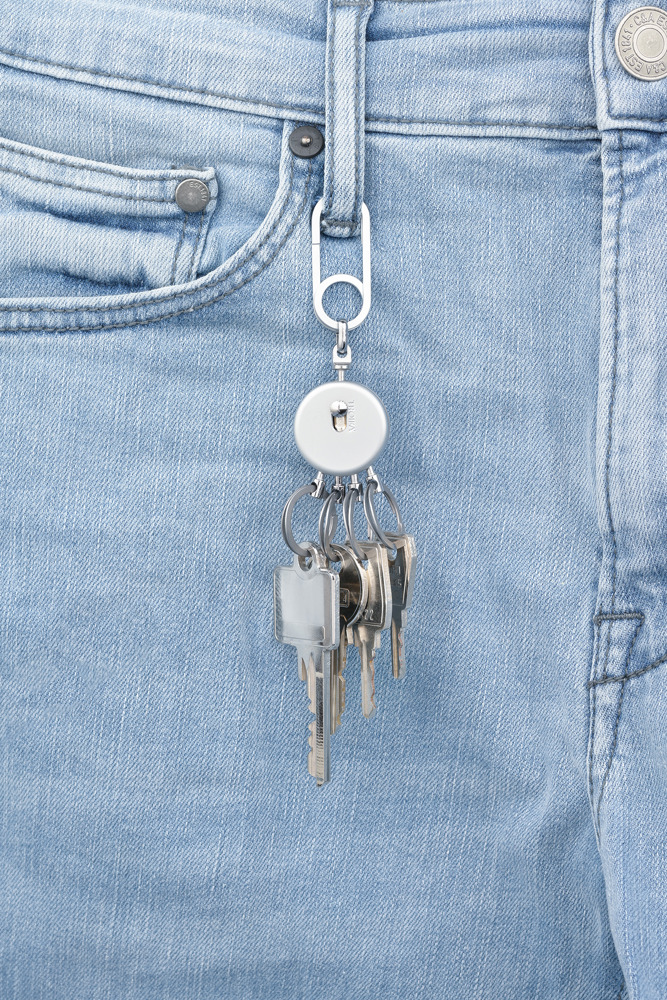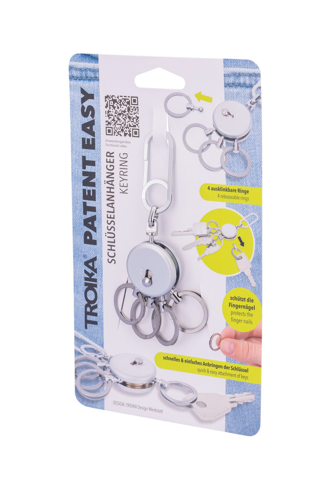 Keyring, round, incl. snap hook, 4 releaseable rings, quick & easy attachment of the keys thanks to the patented opening mechanism (TROIKA NAIL GUARD), brass, metal, chrome plated, matt, silver-coloured