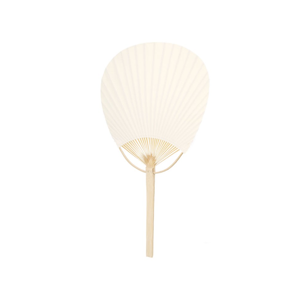 Fan made of bamboo in combination with paper. Materials like bamboo encourage the use of natural raw materials, reducing polluting emissions. Additionally, bamboo comes from a highly resilient and versatile plant, with rapid growth and regeneration, making it an excellent alternative to traditional wood.