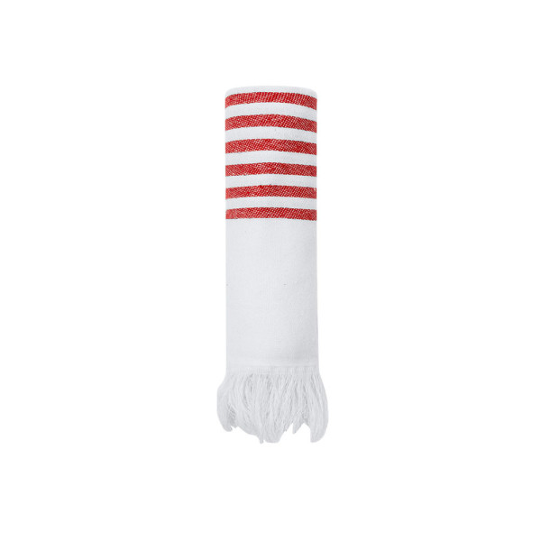 Soft pareo-towel of 3000 g/m², made from a combination of recycled cotton and recycled polyester SEAQUAL. Its design features a white base combined with colored stripes and distinguished fringes at the ends. Includes SEAQUAL design label, certifying its sustainable origin and contribution to ocean cleaning. SEAQUAL INITIATIVE works with collaborators and authorities to help clean our oceans. Marine waste from our beaches, ocean floors, and surfaces, rivers, and estuaries is collected through cleaning programs. It is then sorted into different types of materials, and the plastic portion is cleaned and transformed into RECYCLED MARINE PLASTIC, a fully traceable raw material that creates sustainable and inspiring products. By choosing products that contain RECYCLED MARINE PLASTIC, you are helping to clean our oceans. TOGETHER FOR A CLEAN OCEAN.