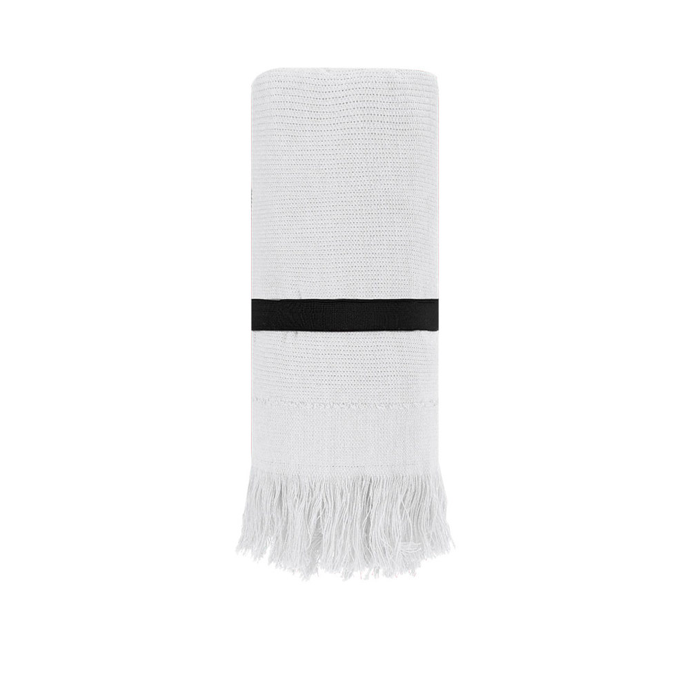 Soft towel made from 290g/m2 cotton. Its design is distinguished by elegant fringes at the ends and includes practical elastic band for easy transport and storage.