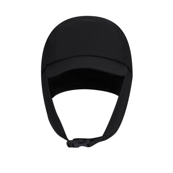 Cap with ear flaps and warm polar fleece interior. Includes elastic cord with adjustment accessory to fit different sizes and adjustable buckle closure at the chin.