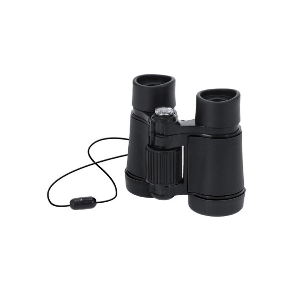 Adjustable long-range binoculars with glass lenses and a sturdy ABS body. With a soft and comfortable support area around the eyes. With compass and strap with anti-strangulation system. Includes case with Velcro closure and belt strap.