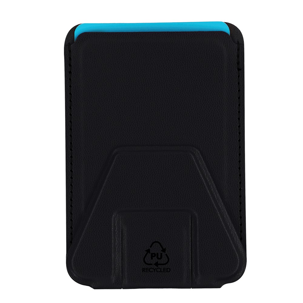Cardholder cover made from Recycled PU. With multifunctional support that allows for various positions. With an adhesive fastening system. Includes a Recycled PU label.Recycled PU stands out for its durability and elasticity. This recycled and recyclable material is a sustainable option that rescues discarded fibers in manufacturing processes, thus minimizing material waste and contributing to reducing environmental impact while maintaining its original properties.