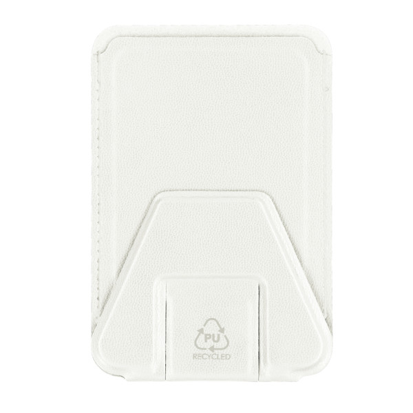 Cardholder cover made from Recycled PU. With multifunctional support that allows for various positions. With an adhesive fastening system. Includes a Recycled PU label.Recycled PU stands out for its durability and elasticity. This recycled and recyclable material is a sustainable option that rescues discarded fibers in manufacturing processes, thus minimizing material waste and contributing to reducing environmental impact while maintaining its original properties.
