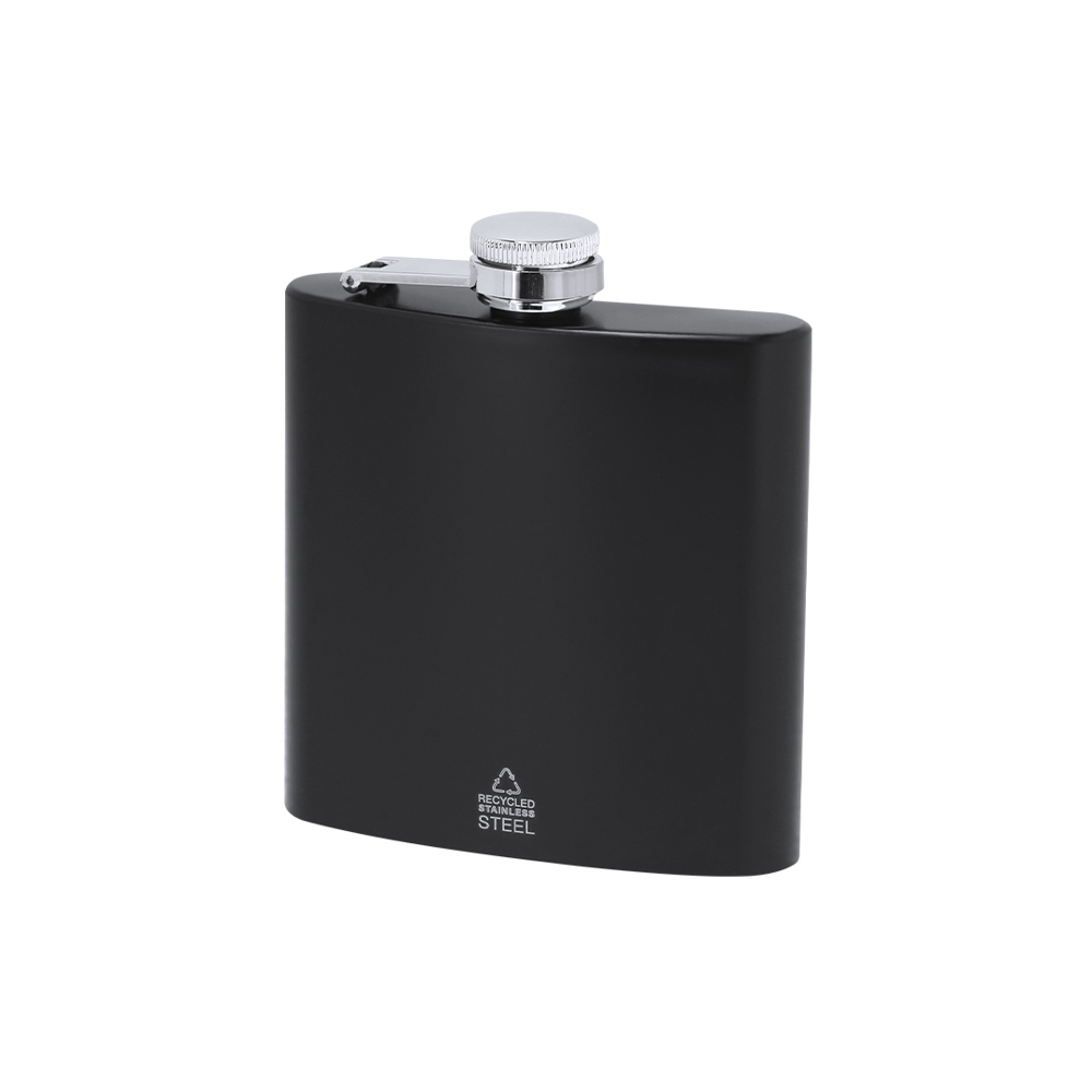 175 ml capacity hip flask with body made of Recycled Stainless Steel and screw-on safety cap. Ergonomic design for comfortable pocket storage and body in matte finish. Featuring a Recycled Stainless Steel emblem.Stainless steel is one of the most demanded materials and can be found almost everywhere, from everyday products to large constructions. With countless properties, including durability and a high degree of reuse, making it a highly valued alternative in sustainability solutions. When properly treated, it allows for the extraction of new resources for infinite use.