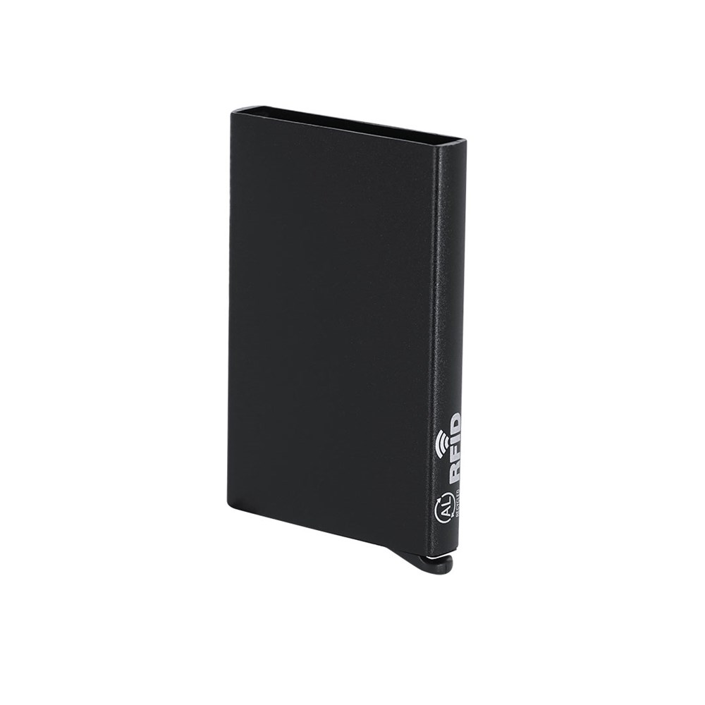 Cardholder made from recycled aluminum. Capacity for up to 10 cards, with an ingenious sliding mechanism for easy access to the cards. RFID (Radio Frequency Identification) security technology that keeps your identity transmission devices secure. RFID and Recycled Aluminum labels.Recycled aluminum is a material with almost infinite recycling possibilities, without losing its original properties and consuming less energy in the process.GRS certification (Global Recycled Standard), which guarantees the recycled origin of the material used to manufacture the product.