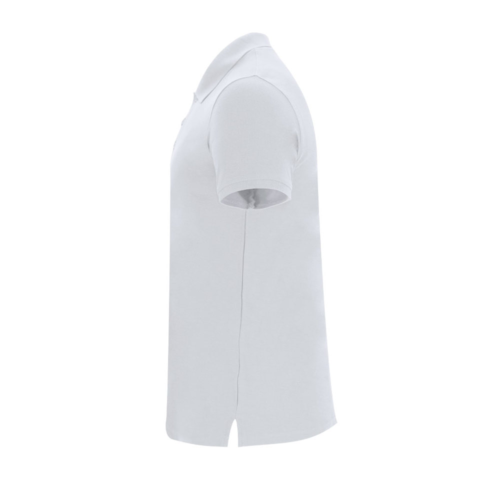 Unisex short-sleeve polo shirt, 200 g/m². Designed with a three-button matte-finish placket. Features reinforced neck tape on the inside for added durability. Ribbed cuffs on the sleeves and collar. Side seams with small vents at the hem for greater comfort and ease of movement.