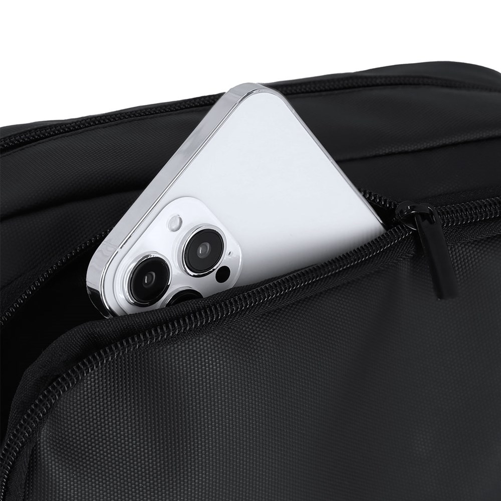 Multipurpose pouch in soft PU. Main pocket and front pocket, with zipper closures and metal pullers. Also includes a handy handle for comfortable transport.