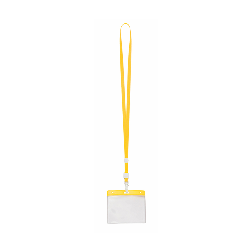 Identifier in PVC with matching color lanyard in bright tones and with carabiner closure.... more