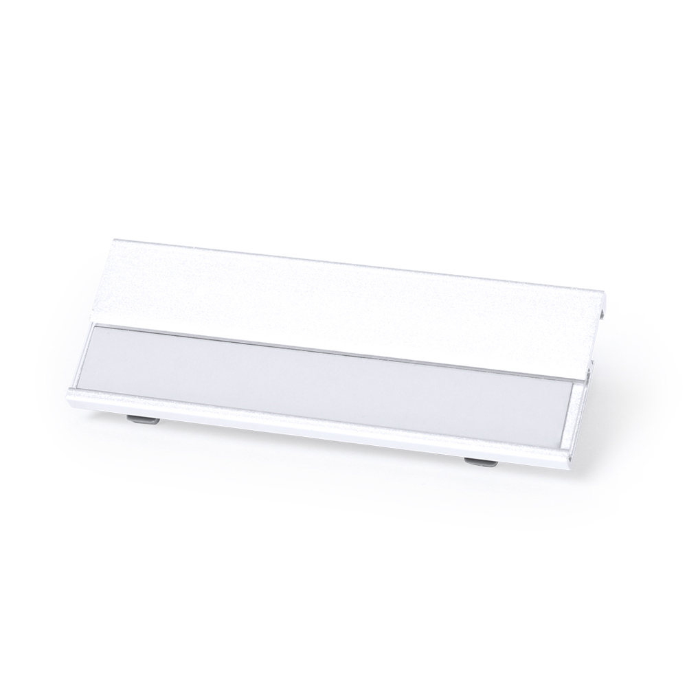 Colorful aluminum name tag and rear hook clip for secure accessory.