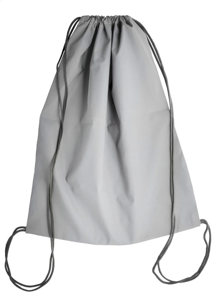 Reflective polyester drawstring bag. The bag's entire surface is made of reflective material. For promotional use only, the product does not qualify as a Personal Protective Equipment.