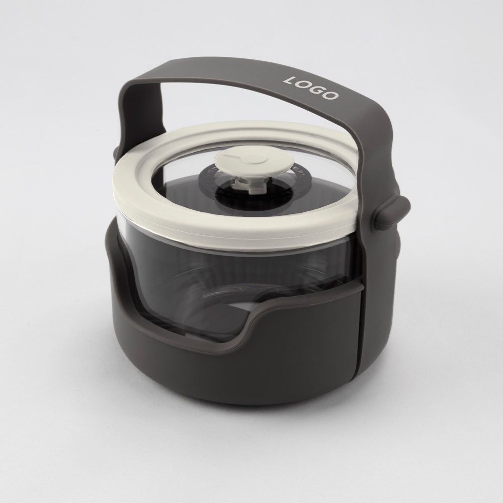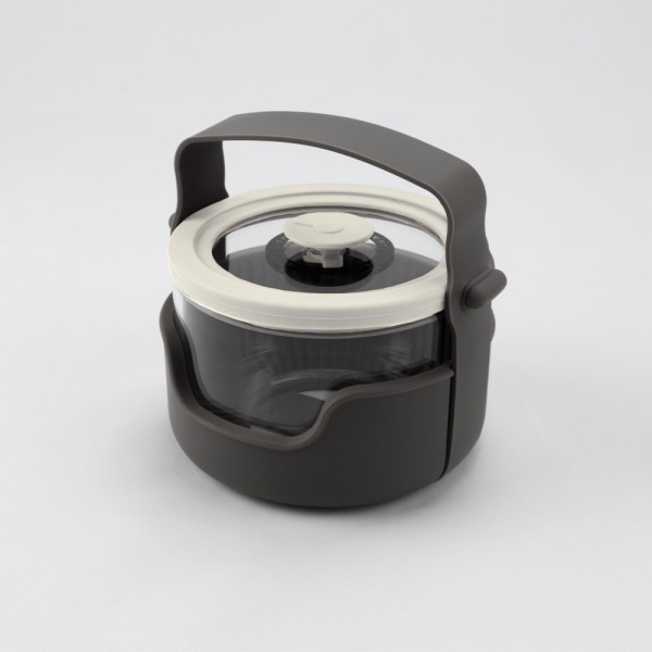 Compact, robust lunch box made of heat-resistant borosilicate glass with 400 ml capacity and silicone holder. Heat-resistant up to 200°C, freezer-safe down to -20°C, with leak-proof silicone seal. Perfect for small portions in the office, at school or on the go. Non-slip base, integrated date display and recipe booklet included. Optionally customizable with logo print in one colour on the silicone carrier band, as an engraving on the jar lid or on the recipe booklet